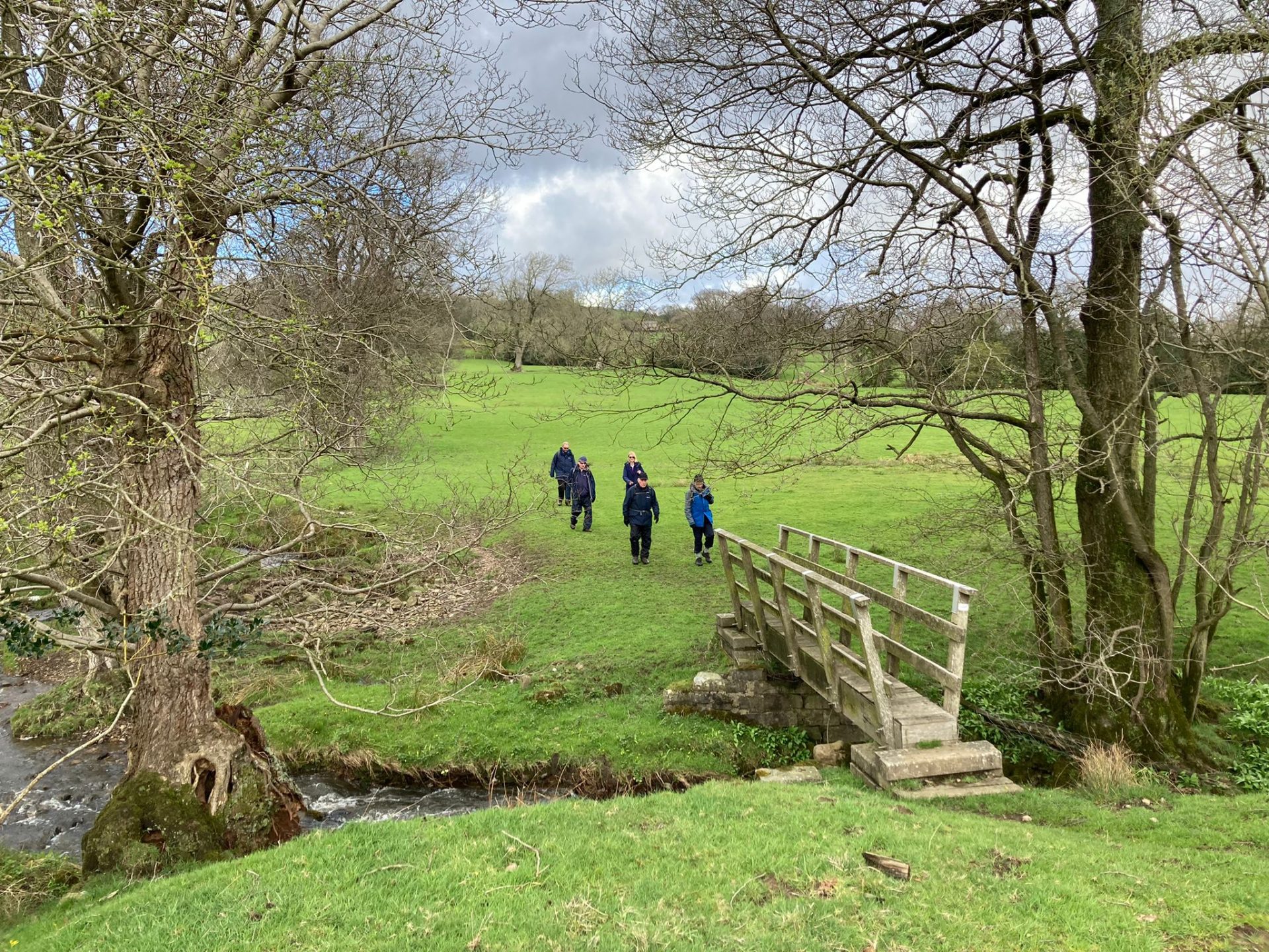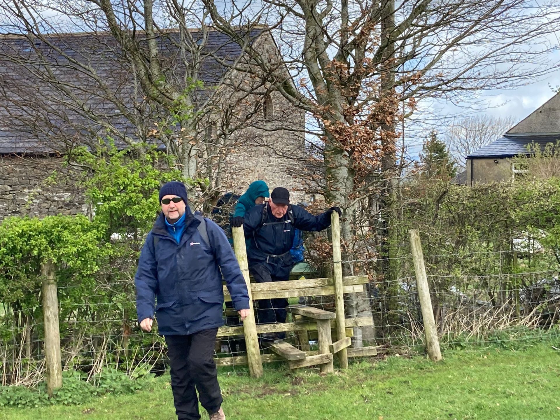 It wouldn’t have been a normal ramble if we didn’t encounter mud, and as can be seen from the photos there was plenty of it! However this paled into insignificance when we realised that Alan had neglected to tell us about the stiles, which were of various levels of disrepair and danger that were on our route! I lost count at 17 and there were plenty more than that, several of which needed our “wingmen” John and Ralph, to give more than a helping hand for many of us to get over. The final one was mounted with a cheer as Alan sheepishly said…that really was the last one! From here we walked through yet another wooded ghyll down to a ” supposedly” private road, to return to the village for lunch and drinks at the pub. Thanks to Alan for leading the ramble but not for the stiles!!