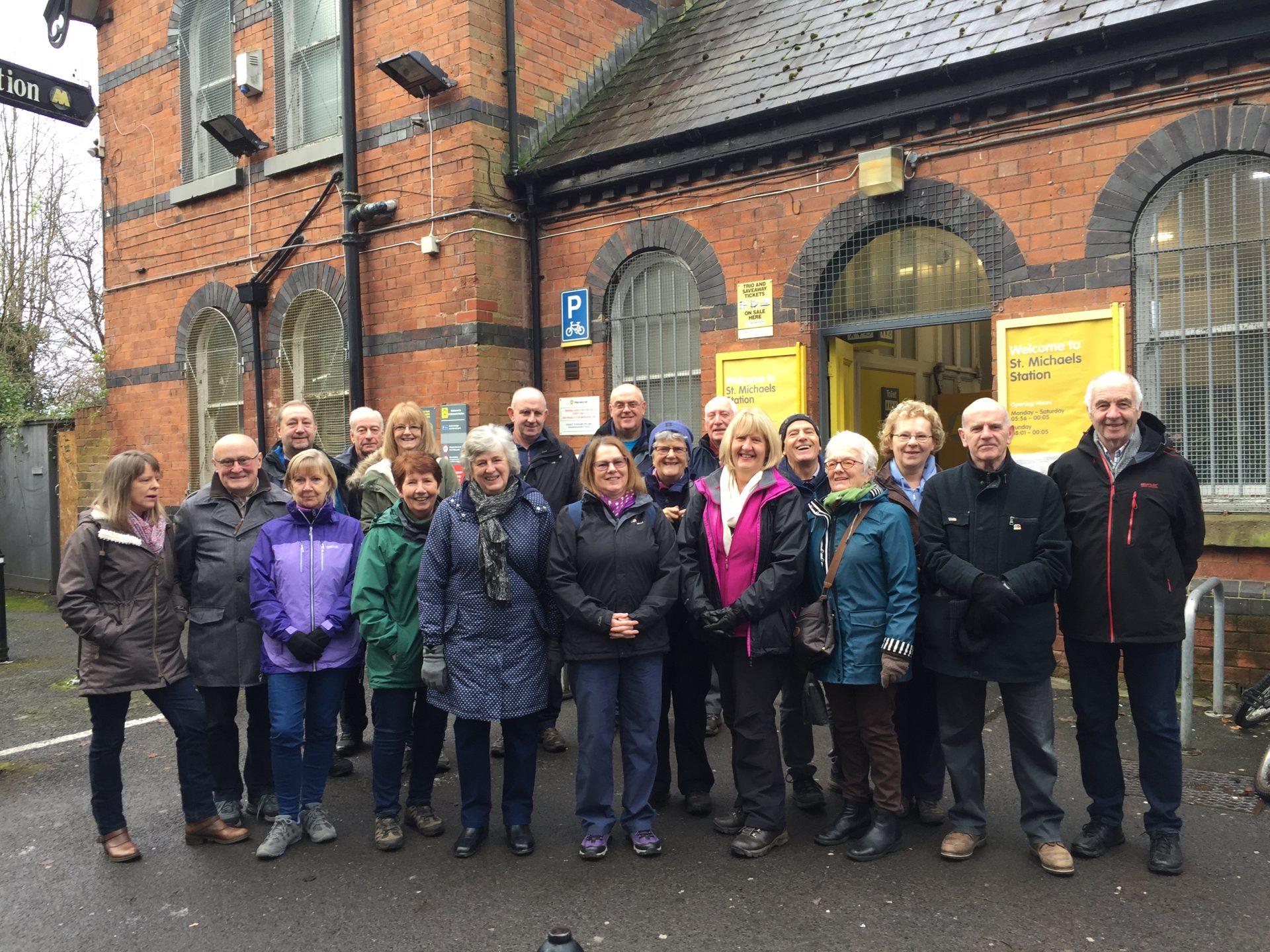 15 Ramblers and 5 Easy walkers joined together today for a roam around 2 of the parks in the south of the city. Alighting at St Michaels station we walked to the perimeter of Sefton Park and meandered along its wide pathways. Passing by the fountains, band stand and fairy glen we took a detour into the Palm House. This was set up for Christmas celebrations and looked splendid. The guide showed several of the group the donation book which included the donation made by the late George Harrison to help return the building back to its former glory in 2002. Continue reading
